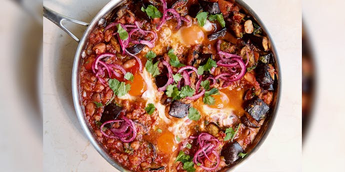 - Place a large (28cm) shallow non-stick pan (with a lid) on a medium heat and add the oil. When the oil is hot, add the ijeh mixture, smoothing it down to make an even patty. Partly cover the pan and cook for about 17 minutes on a low heat, shaking the pan a few times to make sure it doesn’t stick at the bottom, and running a rubber spatula around the sides, until the edges start to get golden brown. Get a large flat plate and it place over the pan.