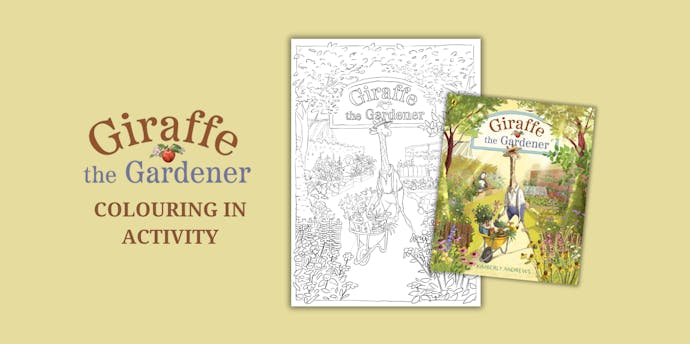Download and print this free colouring-in page from Giraffe the Gardener by Kimberly Andrews.